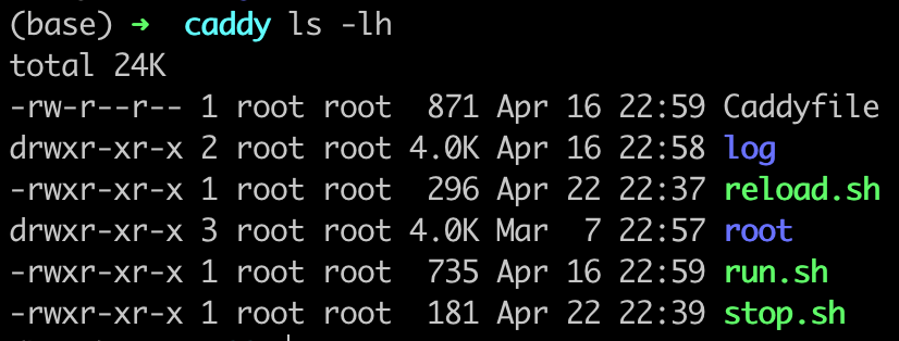 其他参数可以从 docker run --help 输出的帮助文档获取,根据以上参数可以形成一个 run.sh 脚本后台运行 caddy,另外要求重启宿主机后 caddy 能自动重启,脚本如下: