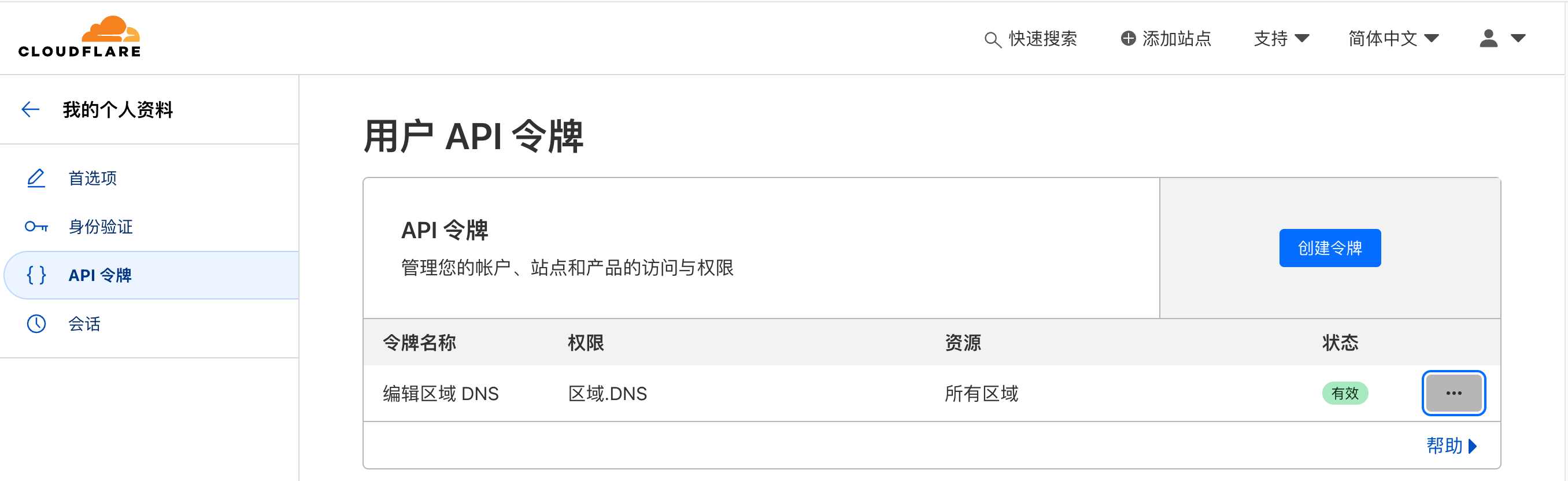 这里使用 DNS 的方式验证域名所有权,首先在 cloudflare 创建一个拥有编辑区域 DNS 权限的多区域 API 令牌: