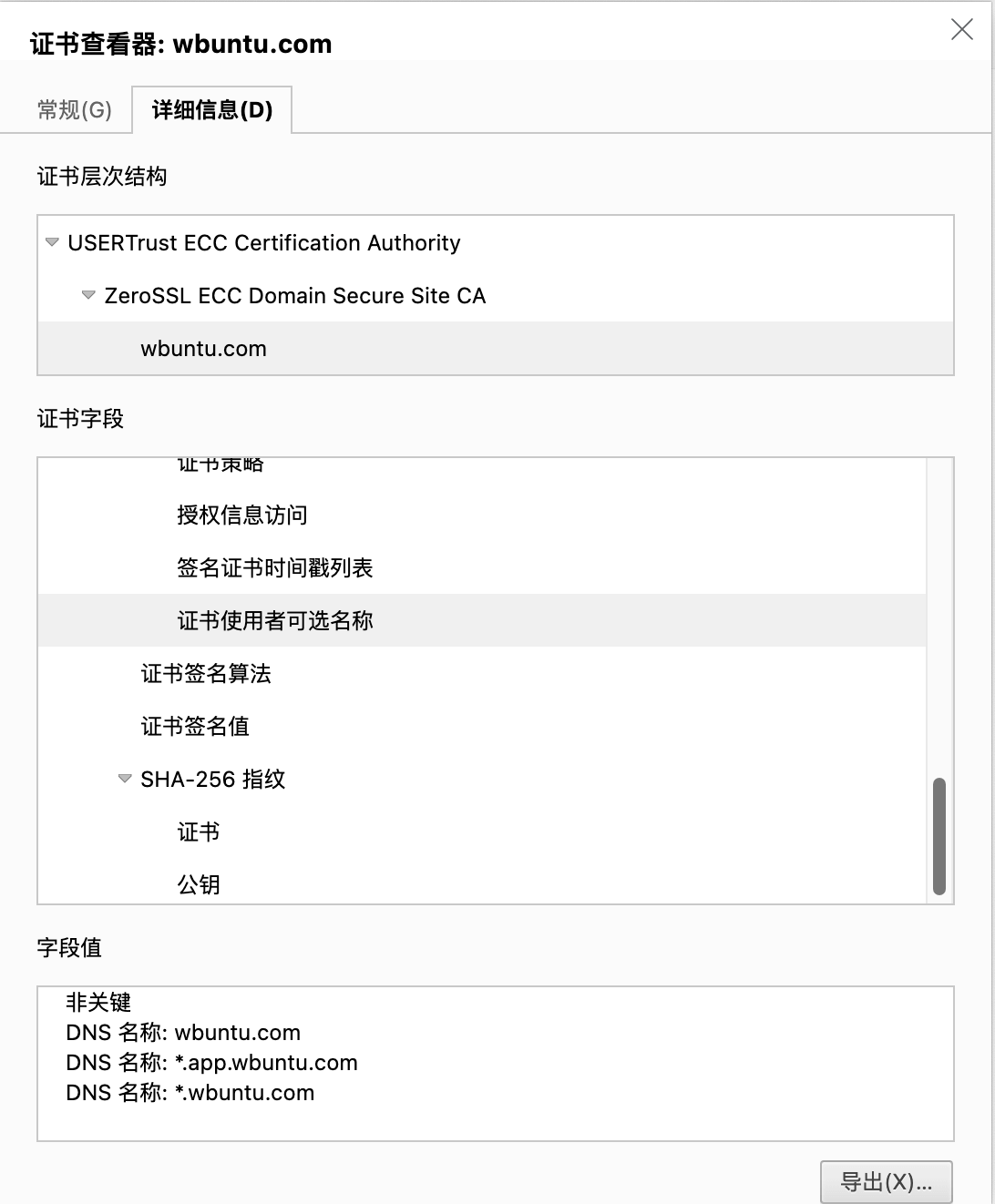 - *.wbuntu.com:对 wbuntu.com 的所有一级子域名有效,如:www.wbuntu.com、test.wbuntu.com