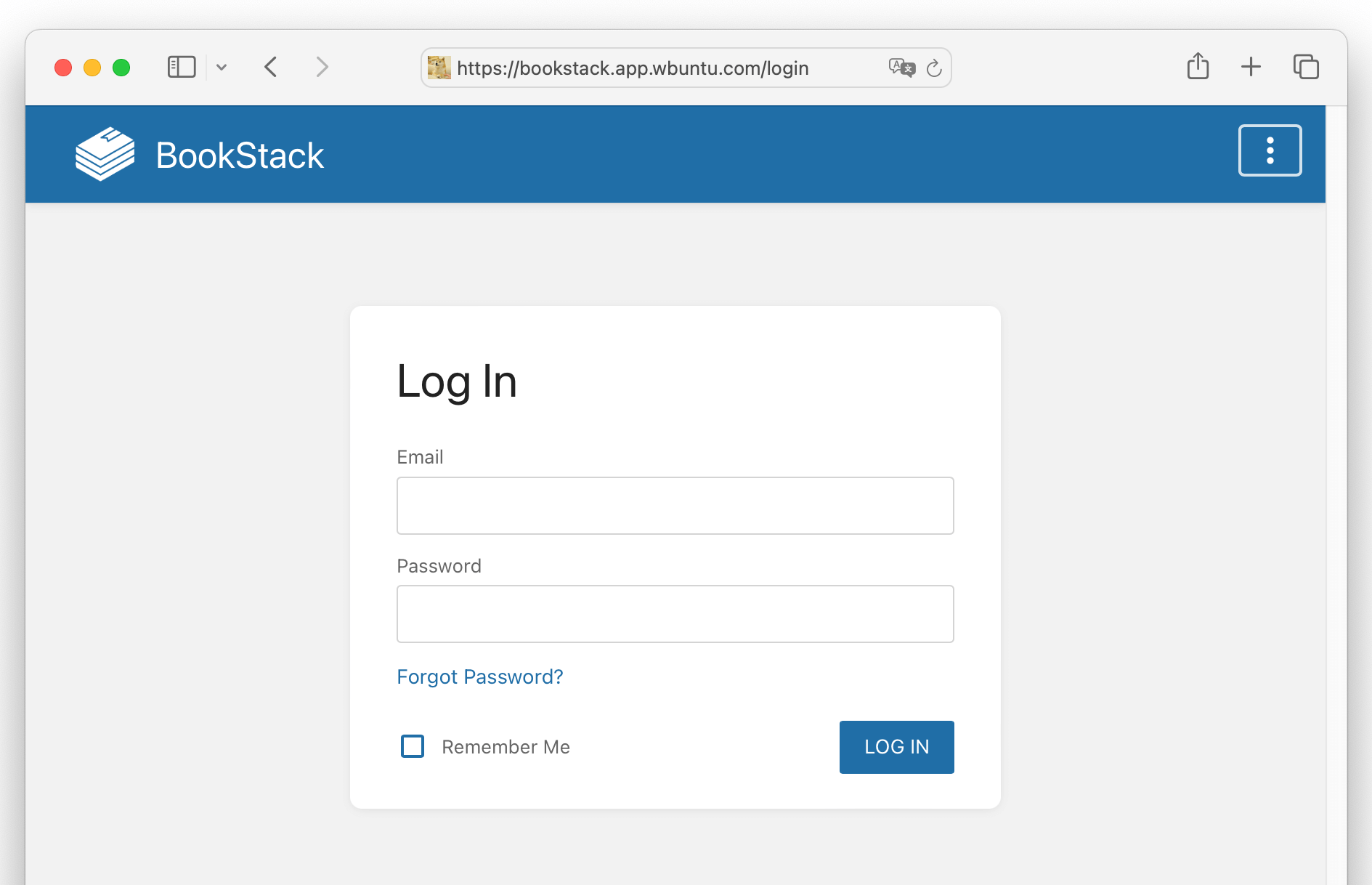 然后配置DNS解析(或者修改本地 hosts)访问域名,可以看到 bookstack 的登录页面: