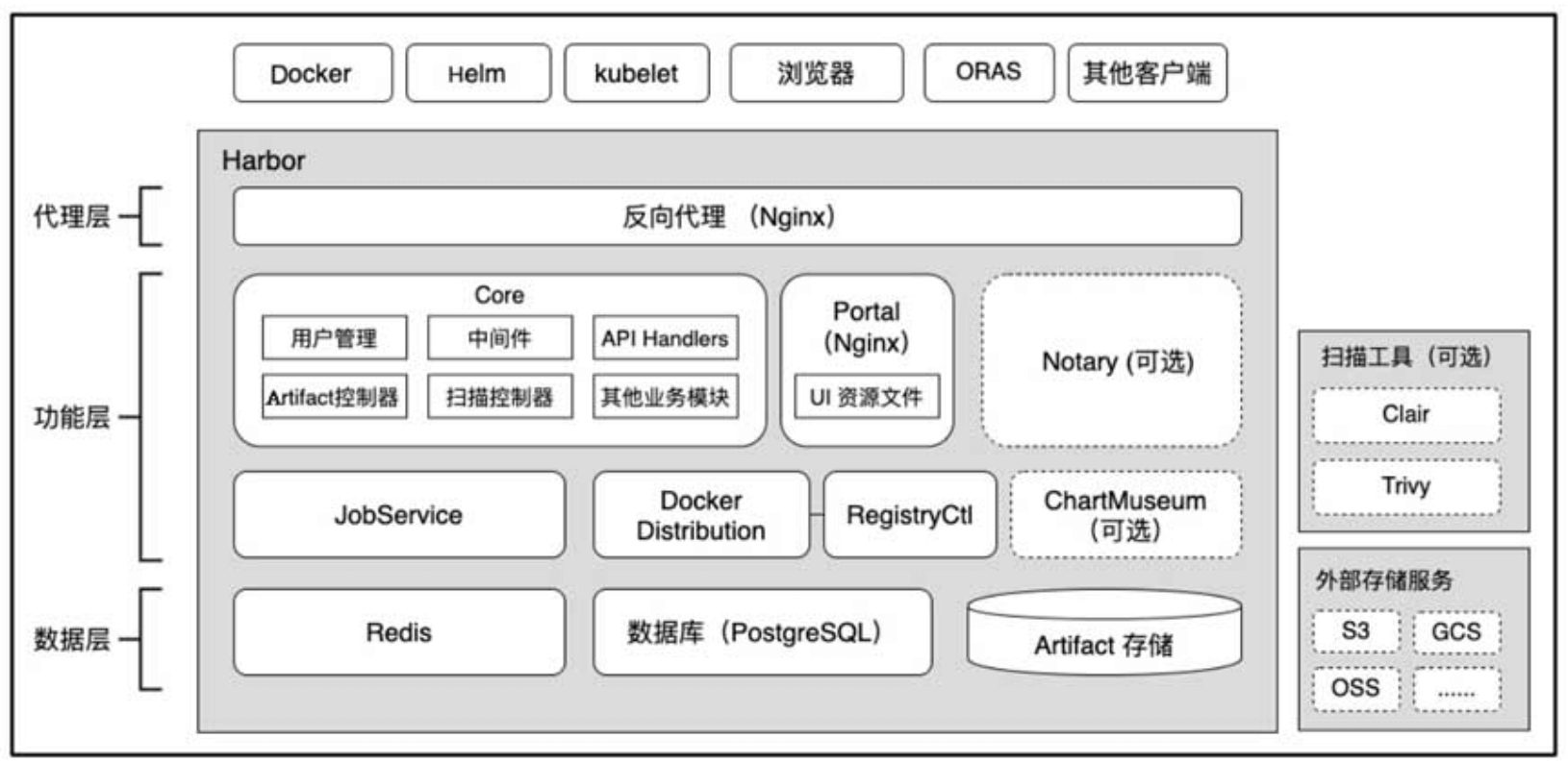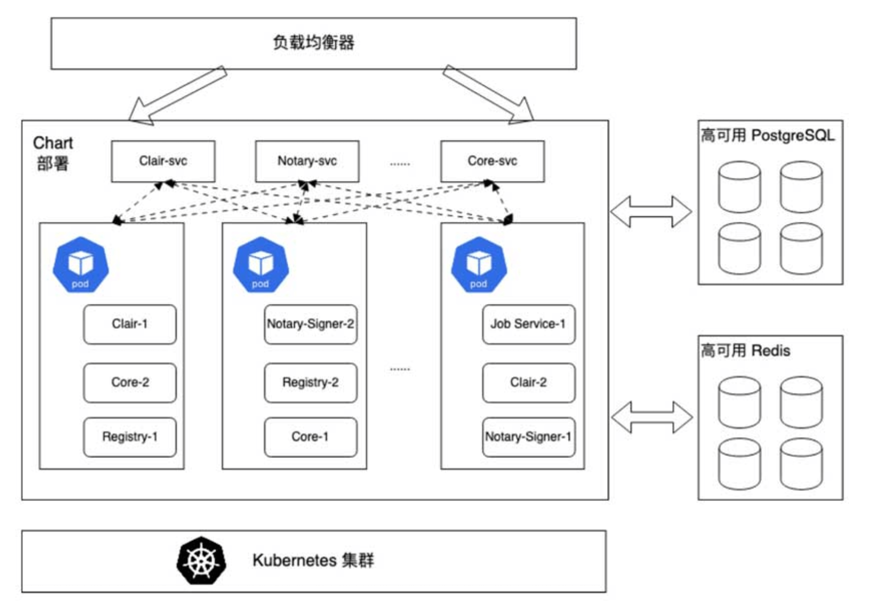 Harbor 的大部分组件都是无状态组件,它的高可用其实就是 postgres、redis 和 S3 的高可用。