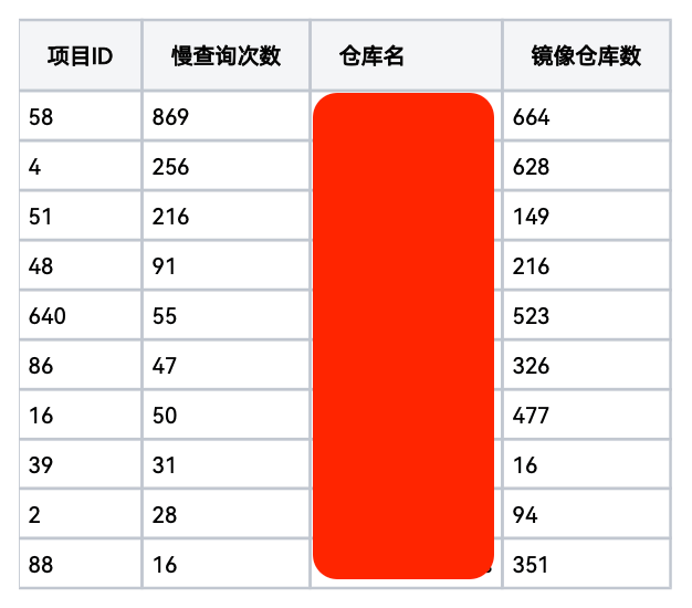 慢查询日志出来后,根据项目 ID 整理了一些数据。