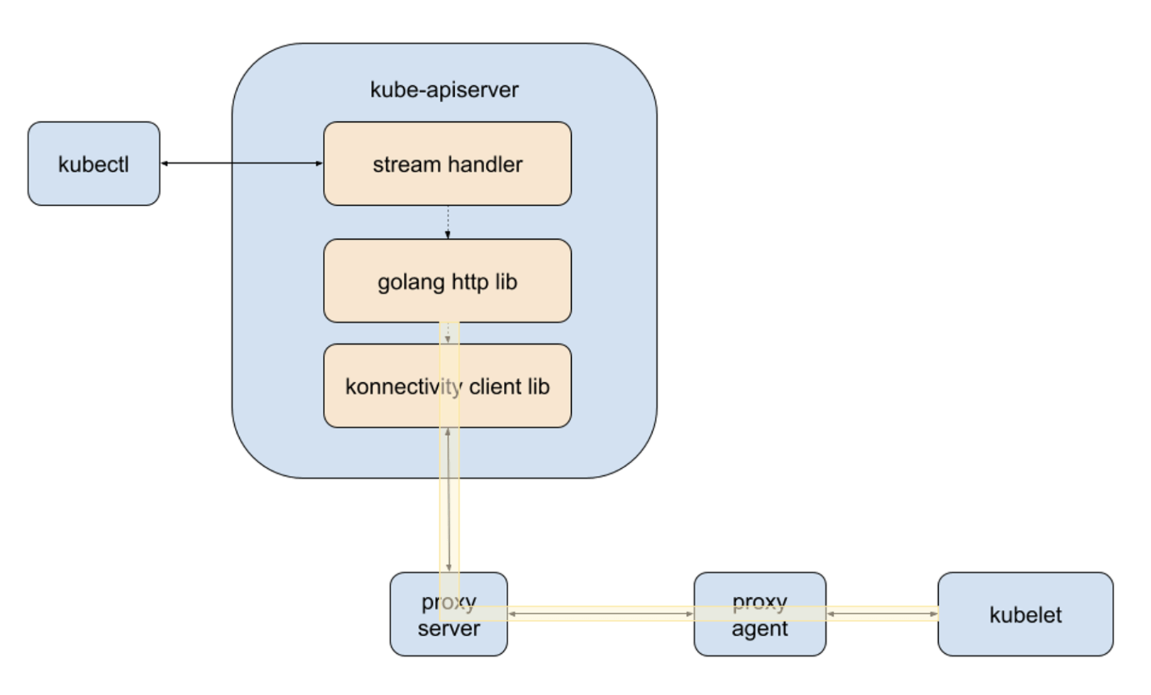 - proxy-agent –> kubelet:使用 TCP,每次新建连接