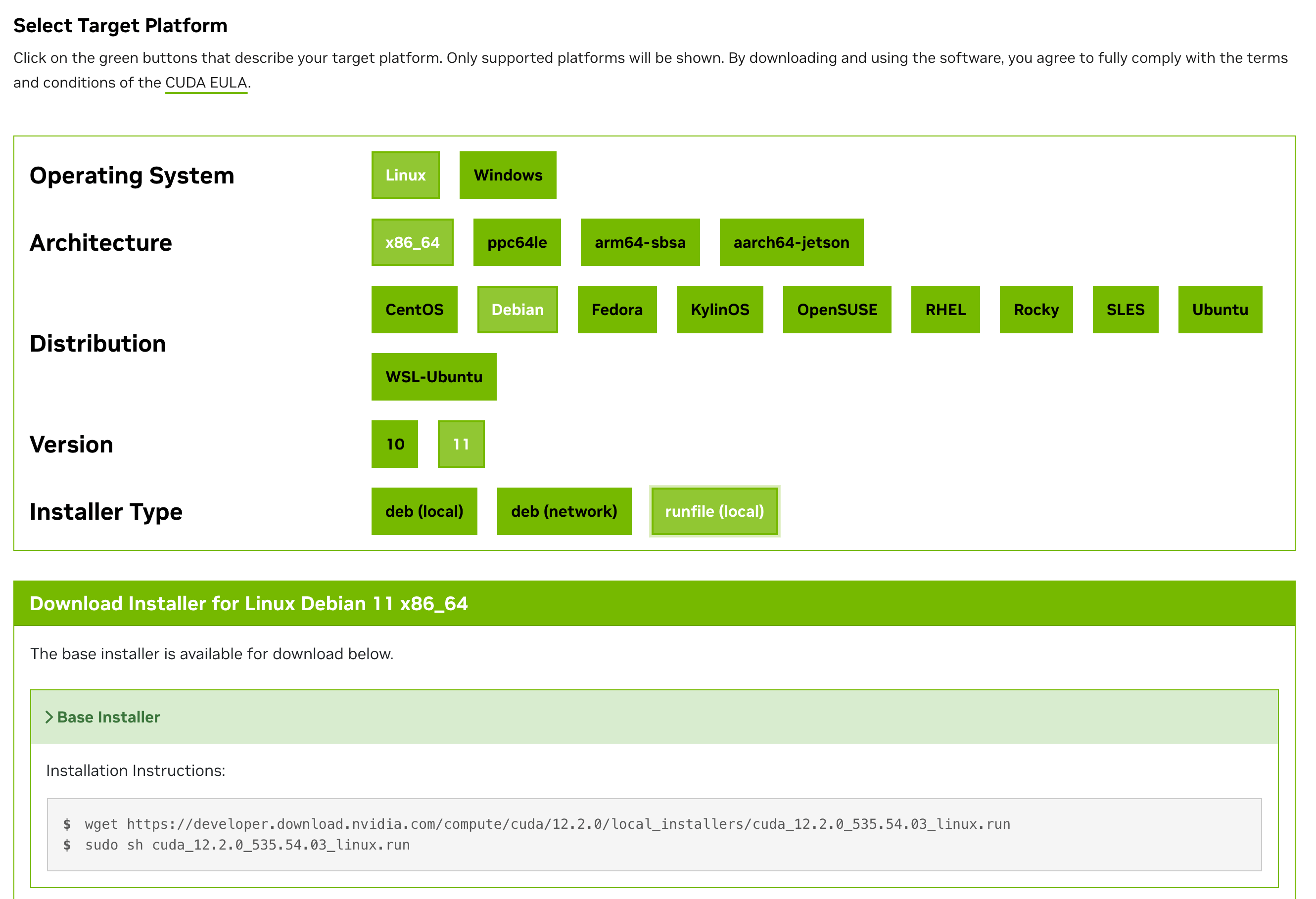 CUDA 也使用 run 文件安装,下载地址:https://developer.nvidia.com/cuda-downloads
